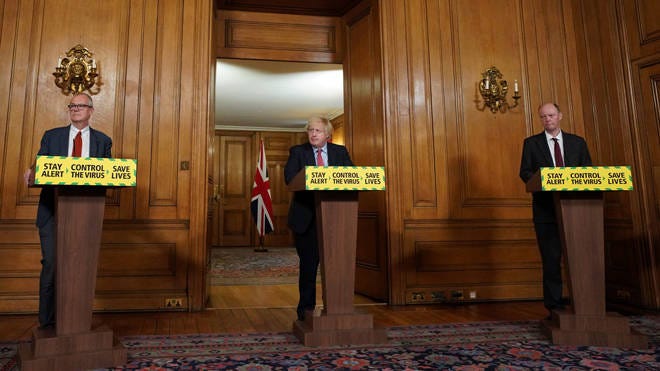 Here is the scene of a Downing Street Covid-19 Press Conference, with Boris standing in the middle of his two chief science advisors. With Sir Philip Vallance, the Chief Scientific Advisor to the U.K. Government on our left while Professor Chris Whitty, the Chief Medical Advisor to the U.K. Government on our right.